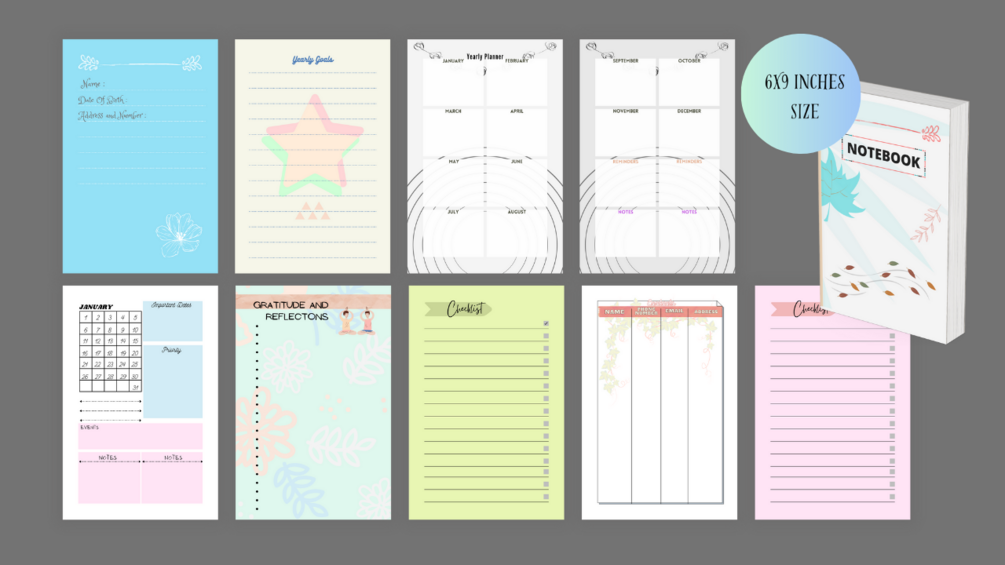 Pastel Planner+Notebook design PDF | 6x9 inches size | 120 PAGES